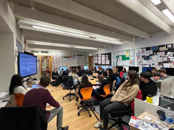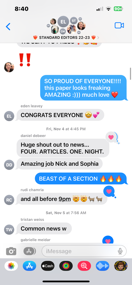 While the days of Zoom meetings are (hopefully) well in the past, our 75 minutes of class time can sometimes be constraining. When we don't get through everything we need to in class, I will often organize meetings outside of class so we can dedicate additional time for editorial writing or giving front/centerspread pitches. These meetings also act as a more casual way to connect with each other outside of class and be productive while doing so.