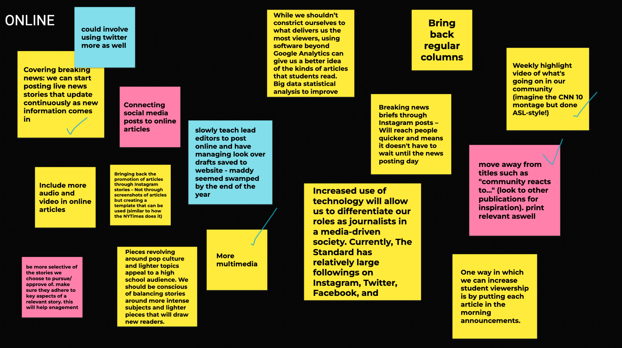 For online, we engage in a similar reflection about daily posting. Monthly, we celebrate consistent posting, multimedia use and the hard work required to maintain our online publication.