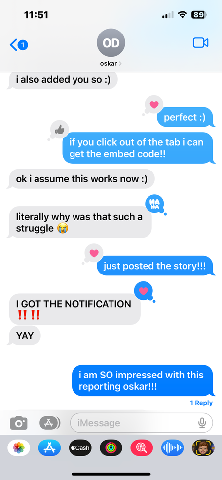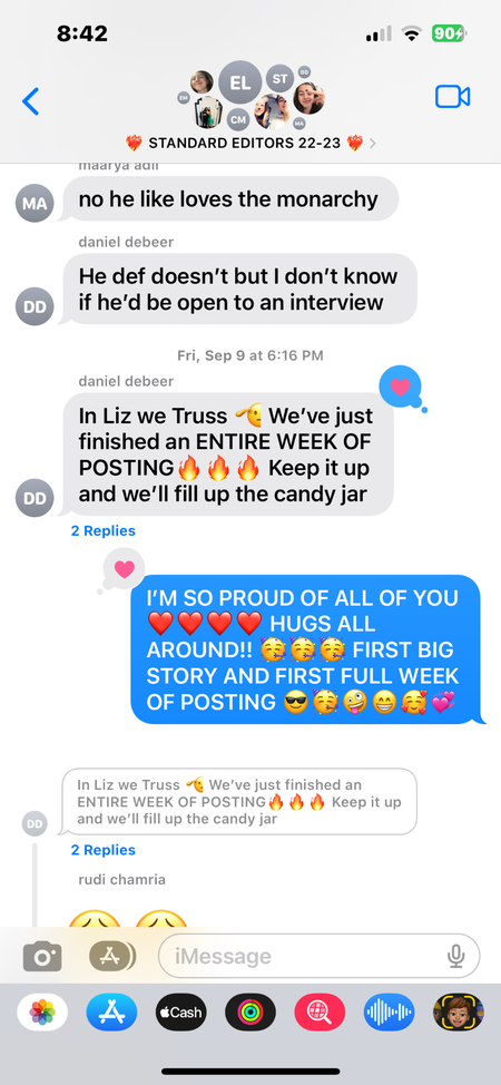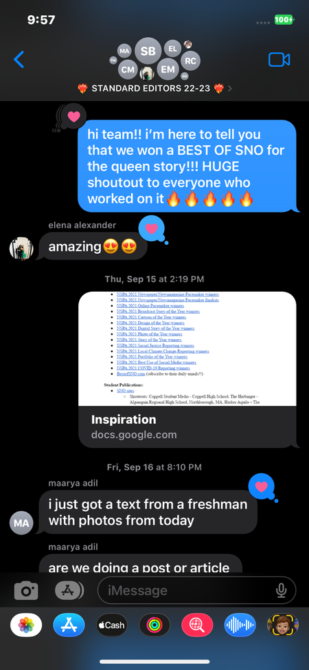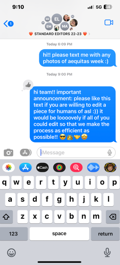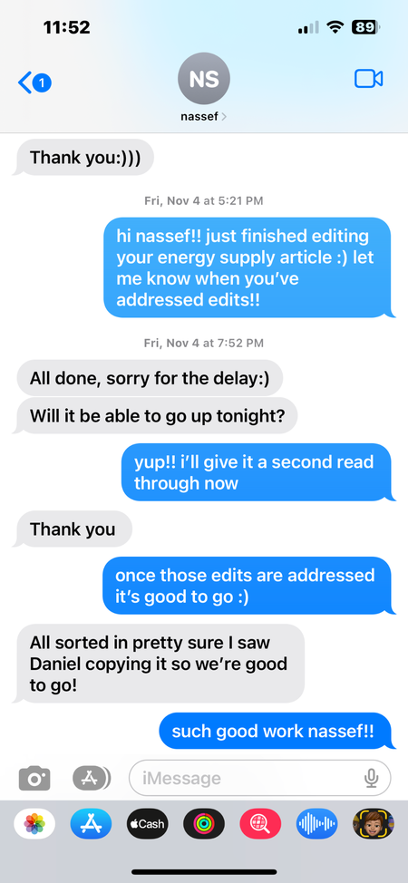 Group chat texts are similarly important to boost morale. Whenever possible, I will shout out an editor for a quick turnaround or a Best of SNO award received. Sending encouraging texts motivates the team to keep up good work and allows editors to support their fellow teammates.