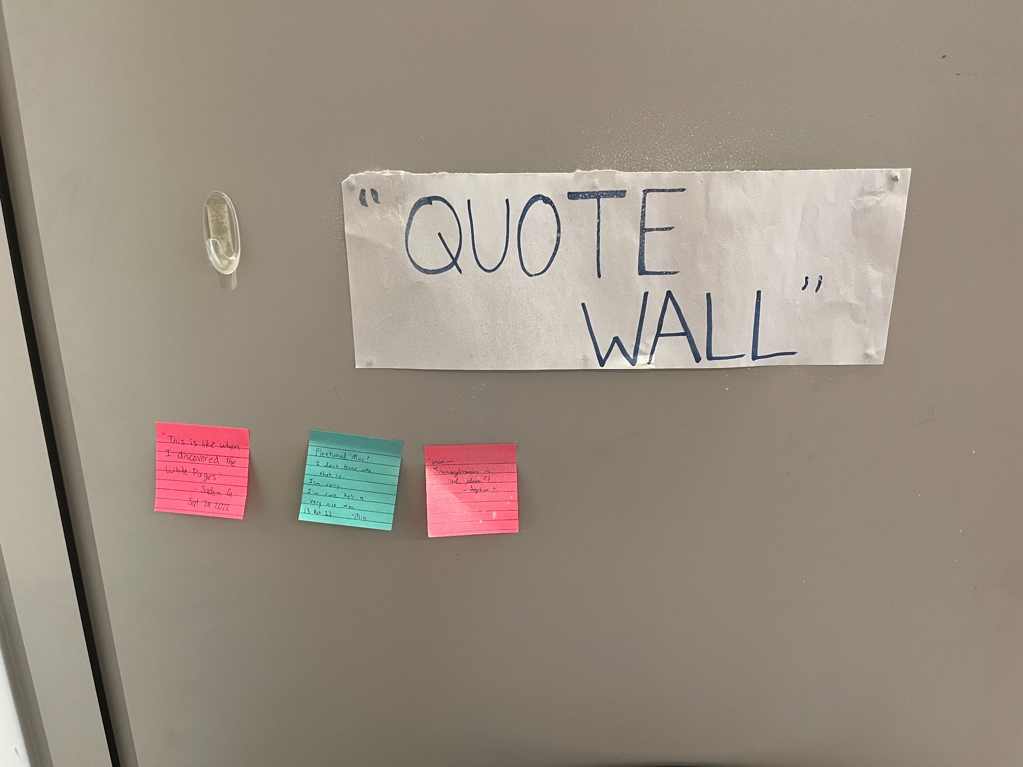 To appreciate the simple moments with each other and boost team rapport, we also have a quote wall where we paste sticky notes of funny sayings in our newsroom.