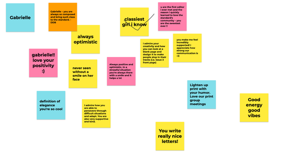 As the Lead Culture Editor in 2021-22, my section received an influx of 30 online articles – an unprecedented number of articles for one section to manage. Typically, the entire publication doesn’t have that volume of articles in circulation. We worked incredibly hard to organize, edit and post content weekly. In doing so, my section editor became extremely overwhelmed. We sat down to talk during a week when the workload was exceptionally high, and I encouraged her to take a week-long break to rest, recuperate and come back stronger. When she returned, the section thrived and we were able to manage articles while maintaining the expectation of boundaries.