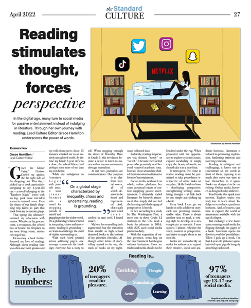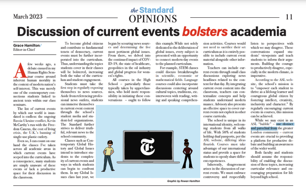 The article achieved its intended purpose. One classmate texted me, “I just read your Standard article and I f***ing loved it u did such an amazing job my friends and I have been talking about it forever and I’m in such awe of you!!” I felt real pride in fulfilling my duty as a journalist: telling underrepresented stories. Stepping into that role required asking the right questions and pushing through numerous “no's.” Overhearing friends and faculty debating a topic seldom discussed was invaluable. That is the hallmark of good journalism – spurring conversation that might just nudge the world.