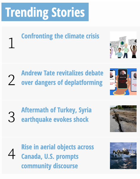 To promote our written content, we also use a "trending stories" widget to allow users to click through the most popular stories published in the past 30 days. This feature enables quick and easy access to stories that may interest them.