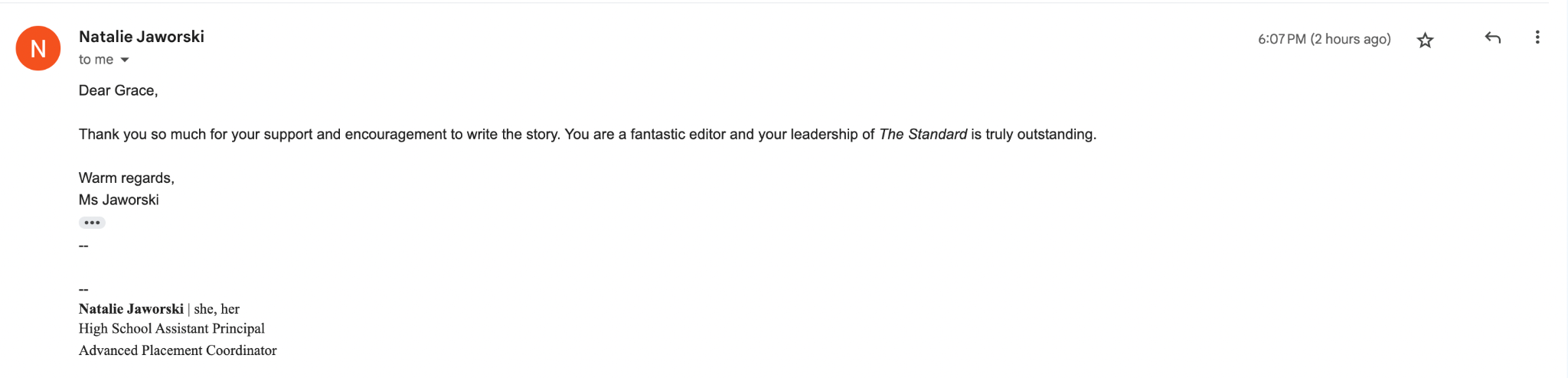 I have also met with members of the administration about guest submissions. Our assistant principal recently reached out asking about an opportunity to write a submission about celebrating history months, and I chatted with her the following day to walk through our steps for publishing the piece and get a better sense of their timeline. When the piece was posted, she emailed to thank us for providing a platform to write about an issue she is passionate about:
