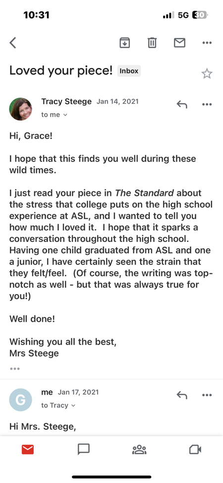 Whenever possible, I encourage students not involved in The Standard to write guest pieces. After publishing my piece on sexual harassment, a girl in my English class approached me to share a story she had been inspired to write. Her piece was a creative amalgamation of the "in her words" multimedia element in my story. I encouraged her to submit her piece to The Standard, and a few days later, we published it. Click the image to view the piece: